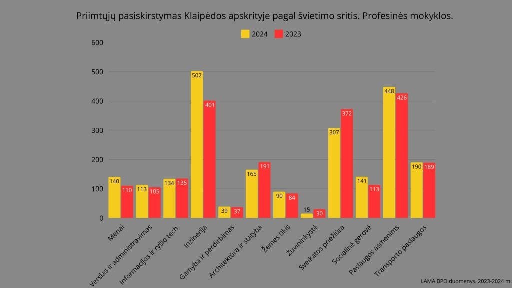 Išanalizavus oficialius 2023-2024 m. duomenis apie Lietuvos profesinio rengimo centrų rezultatus, paaiškėjo, kad 2024 metais Klaipėdos apskrityje populiarumo viršūnėje buvo inžinerinės profesijos, jas rinkosi ketvirtadaliu daugiau asmenų negu 2023 m. Antroje vietoje pagal populiarumą – paslaugų sektoriaus, trečioje – sveikatos priežiūros srities specialybės.
